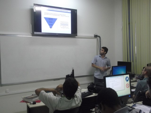 O aluno Ramon Mota Luz defendeu sua monografia do curso de Especialização em Computação Distribuí­da e Ubí­qua no dia 11 de Agosto de 2014. O trabalho, intitulado "Especificação e Implementação de um Modelo Arquitetural para Localizar Estacionamentos em Centros Urbanos", faz parte das pesquisas desenvolvidas pela turma de 2012.